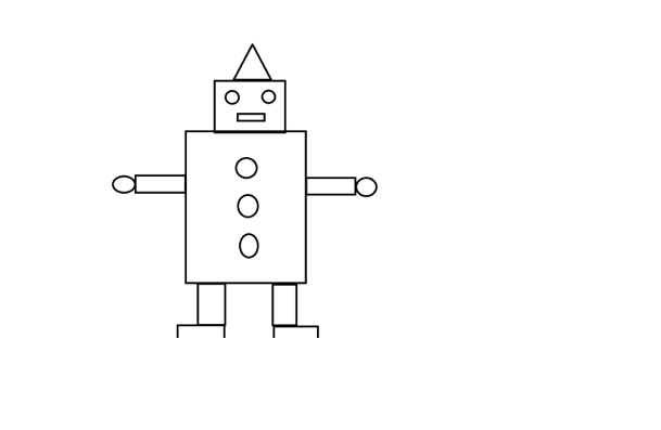 1. Χρησιμοποιήστε το ορθογώνιο, το τρίγωνο και τον κύκλο για να δημιουργήσετε το παρακάτω ρομπότ: