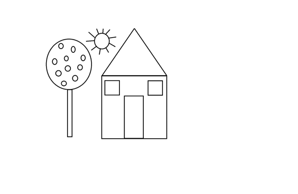 2. Δημιουργήστε ένα σπίτι με ορθογώνια, τετράγωνα και κύκλους και δέντρα με ορθογώνια και κύκλους. Στη συνέχεια γεμίστε τα με τα κατάλληλα χρώματα.
