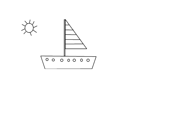 3. Με το εργαλείο του πολυγώνου δημιουργήστε ένα καράβι και στη συνέχεια με άλλα σχήματα σχεδιάστε το όπως παρακάτω: