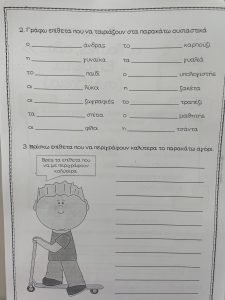 3. Προτάσεις με τις λέξεις στο εργασιών