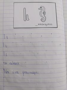 Γλωσσα: 1 φωτοτυπία, Ανάγνωση Β.Μ. σελ. 40-41, Αντιγραφή στο τετράδιο πρώτης γραφής (Ι,ι), Ορθογραφία τις λέξεις απ' το τετράδιο