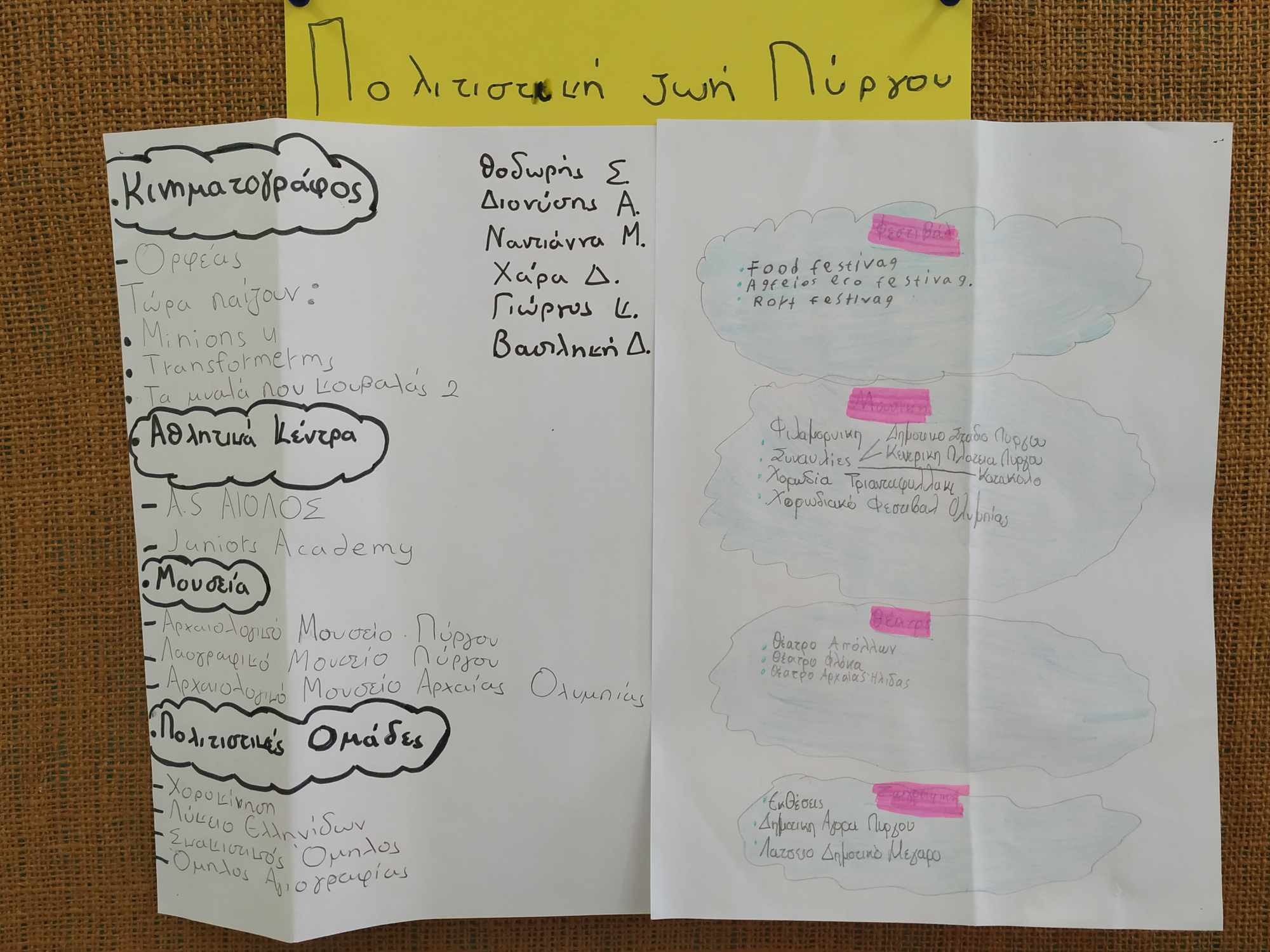 Στην ενότητα 2 «Η ζωή στην πόλη» ασχοληθήκαμε με την πολιτιστική ζωή της πόλης μας, του Πύργου. Με σκοπό να μάθουμε περισσότερα για τις πολιτιστικές εκδηλώσεις που διοργανώνονται στην πόλη μας, οι μαθητές και οι μαθήτριες χωρισμένοι σε τρείς ομάδες, ρώτησαν τους οικείους τους και αφού συγκέντρωσαν τις απαραίτητες πληροφορίες, τις επεξεργάστηκαν δημιουργώντας ενδιαφέρουσες αφίσες με θέμα την Πολιτιστική ζωή του Πύργου. Μέσα από την έρευνά τους, οι μαθητές έμαθαν για διάφορες πολιτιστικές δραστηριότητες που λαμβάνουν χώρα στον Πύργο, όπως θεατρικές παραστάσεις, συναυλίες, εκθέσεις τέχνης και φεστιβάλ. Ένα από τα πιο γνωστά φεστιβάλ είναι το Φεστιβάλ Πύργου, το οποίο συγκεντρώνει καλλιτέχνες και επισκέπτες από όλη την Ελλάδα. Μέσα από τη διαδικασία αυτή, καταλάβαν πόσο πλούσια και ενδιαφέρουσα είναι η πολιτιστική ζωή του Πύργου και πόσο σημαντικό είναι να συμμετέχουν σε αυτές τις εκδηλώσεις για να ενισχύσουν τη σύνδεσή τους με την τοπική κοινωνία και τον πολιτισμό.