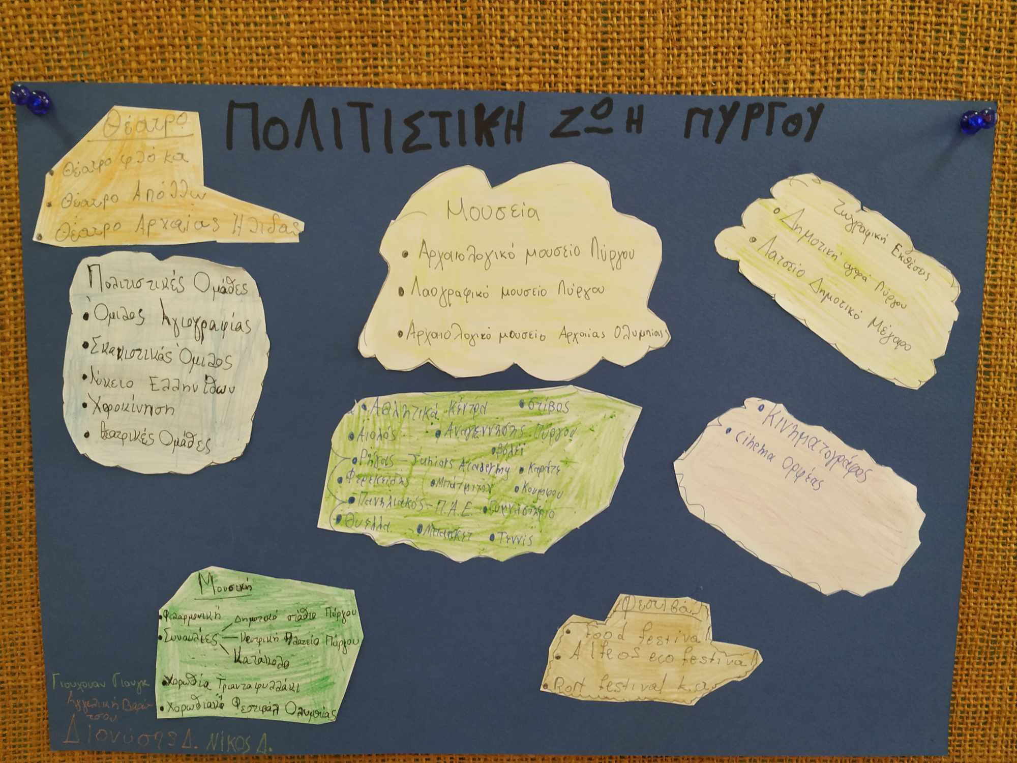 Στην ενότητα 2 «Η ζωή στην πόλη» ασχοληθήκαμε με την πολιτιστική ζωή της πόλης μας, του Πύργου. Με σκοπό να μάθουμε περισσότερα για τις πολιτιστικές εκδηλώσεις που διοργανώνονται στην πόλη μας, οι μαθητές και οι μαθήτριες χωρισμένοι σε τρείς ομάδες, ρώτησαν τους οικείους τους και αφού συγκέντρωσαν τις απαραίτητες πληροφορίες, τις επεξεργάστηκαν δημιουργώντας ενδιαφέρουσες αφίσες με θέμα την Πολιτιστική ζωή του Πύργου. Μέσα από την έρευνά τους, οι μαθητές έμαθαν για διάφορες πολιτιστικές δραστηριότητες που λαμβάνουν χώρα στον Πύργο, όπως θεατρικές παραστάσεις, συναυλίες, εκθέσεις τέχνης και φεστιβάλ. Ένα από τα πιο γνωστά φεστιβάλ είναι το Φεστιβάλ Πύργου, το οποίο συγκεντρώνει καλλιτέχνες και επισκέπτες από όλη την Ελλάδα. Μέσα από τη διαδικασία αυτή, καταλάβαν πόσο πλούσια και ενδιαφέρουσα είναι η πολιτιστική ζωή του Πύργου και πόσο σημαντικό είναι να συμμετέχουν σε αυτές τις εκδηλώσεις για να ενισχύσουν τη σύνδεσή τους με την τοπική κοινωνία και τον πολιτισμό.