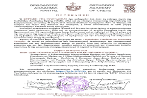 Πρόσκληση για τη Διαδικτυακή Εκδήλωση της ΟΑΚ το Σάββατο 20 Μαρτίου 2021 με αφορμή την εορτή της Κυριακής της Ορθοδοξίας.