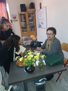 Η Α΄ Τάξη του 7ου Γυμνασίου Χανίων υποδέχτηκε τη Τετάρτη 17 Απριλίου 2019 στη βιβλιοθήκη του σχολείου τη συγγραφέα και αφηγήτρια λαϊκών παραμυθιών κ. Λιλή Λαμπρέλλη.