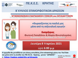 Την Δευτέρα 08 Μαρτίου 18:00-20:00, θα πραγματοποιηθεί διαδικτυακή δράση από το ΠΕΚΕΣ ΚΡΗΤΗΣ με τους ψυχολόγους του Χαμόγελου του Παιδιού.