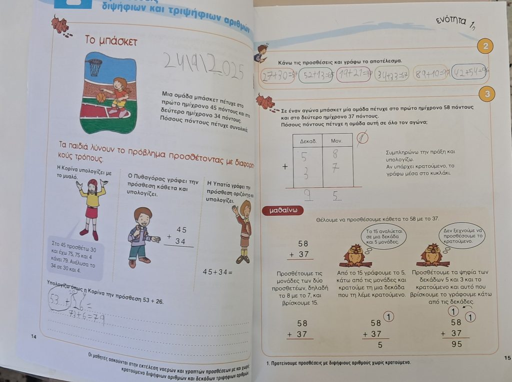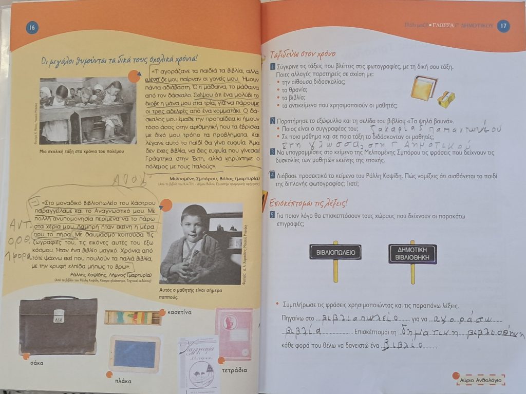 Επιπλέον, κάναμε Θρησκευτικά και Μελέτη Περιβάλλοντος. Υπενθυμίζεται ότι τα βιβλία αυτά παραμένουν στην τάξη και τα παιδιά δεν έχουν σε αυτά τα μαθήματα καμία υποχρέωση.