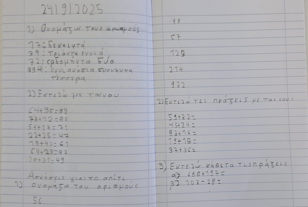 - Μελετώ ό,τι κάναμε στην τάξη. Εξασκούμαι στις προσθέσεις με τον νου.
