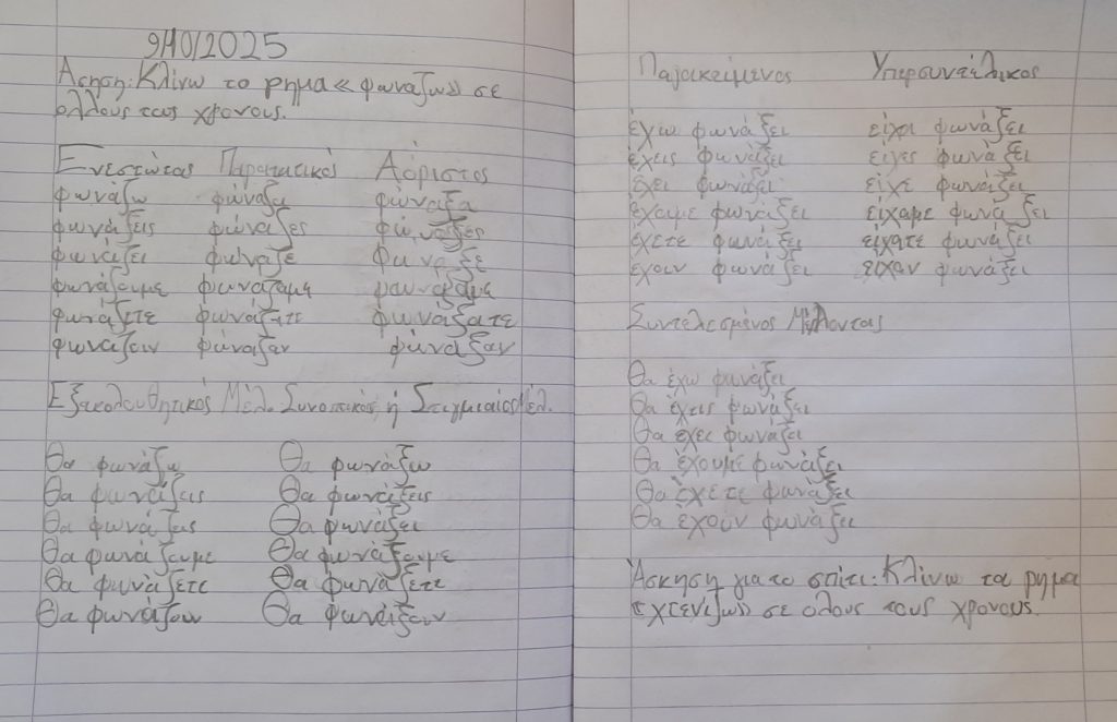 • Άσκηση στο τετράδιο: Κλίνω σε όλους τους χρόνους το ρήμα "χτενίζω"