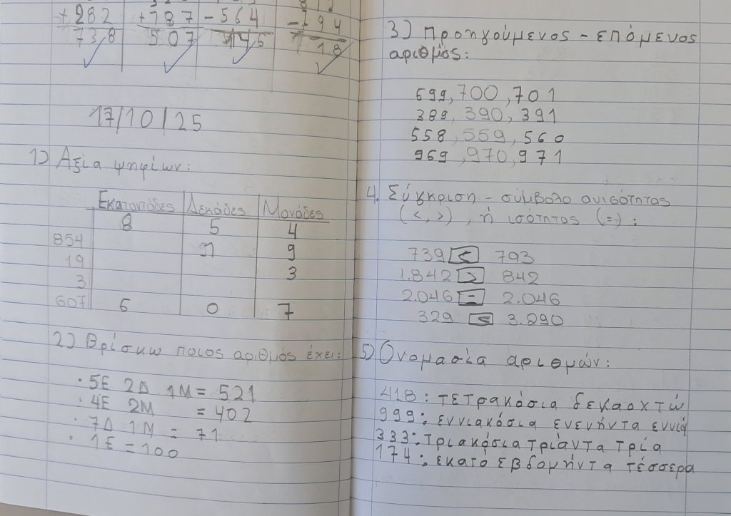 - Ανάλυση αριθμών σε μονάδες, δεκάδες, εκατοντάδες