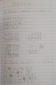 ΜΑΘΗΜΑΤΙΚΑ: Κάναμε τις σελ. 94-95 Β.Μ. και γράψαμε στο τετράδιο.