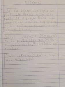 Την Τετάρτη 11/2/2026 θα γράψουμε επαναληπτικό Μαθηματικών στα κλάσματα.