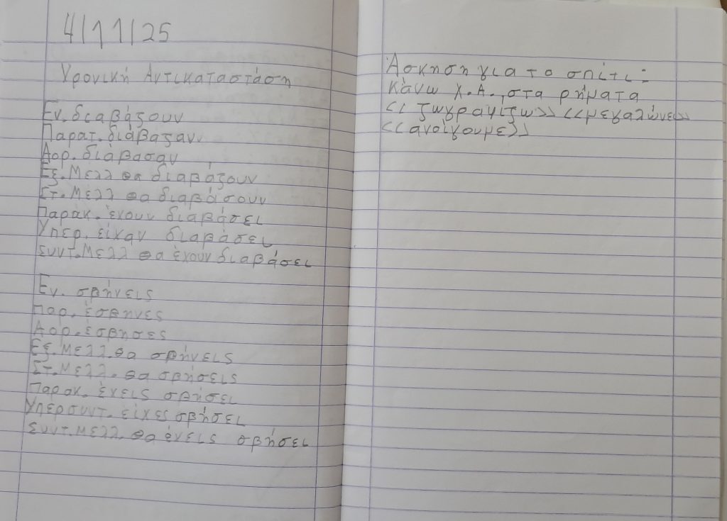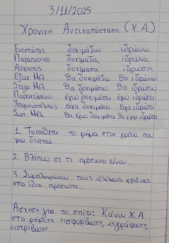• Μελετώ ό,τι κάναμε στην τάξη και εξασκούμαι στις χρονικές αντικαταστάσεις.