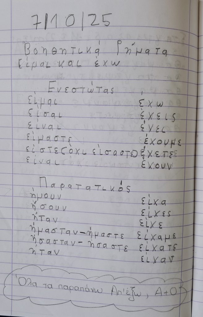 • Ρήμα «έχω» και «είμαι» σε Ενεστώτα και Παρατατικό