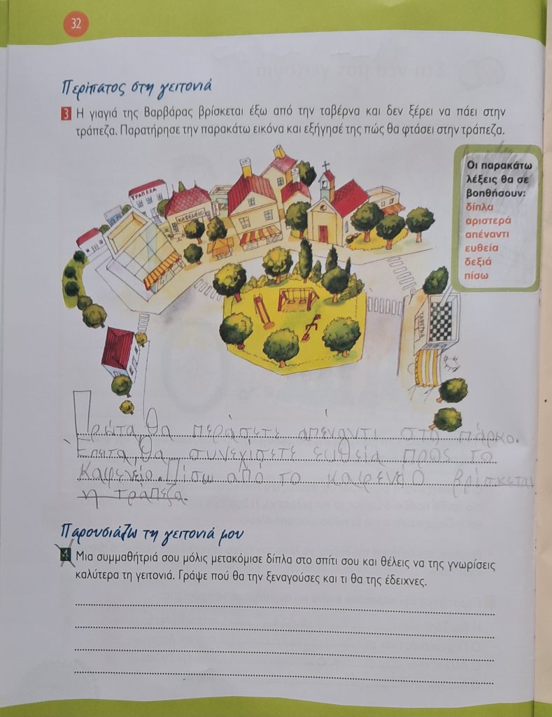• Αντ. (1 φορά) και Ορθ. τις υπογραμμισμένες λέξεις της σελ. 43 Β.Μ. (γειτονιά, διαμέρισμα, εγγόνια, ημερολόγιο, μαλλιά, οικογένεια, παιχνίδι, πρόσωπο, συλλογή, τηλεόραση, φίλος, αδύναμος, ευγενικός, καινούριος, πονηρός, κρύβω, συζητώ, τσακώνομαι, χρειάζομαι)