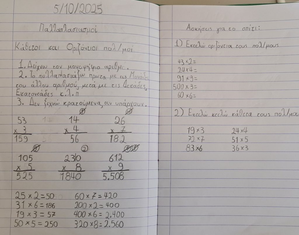 • Εξασκούμαι στους οριζόντιους και κάθετους πολλαπλασιασμούς