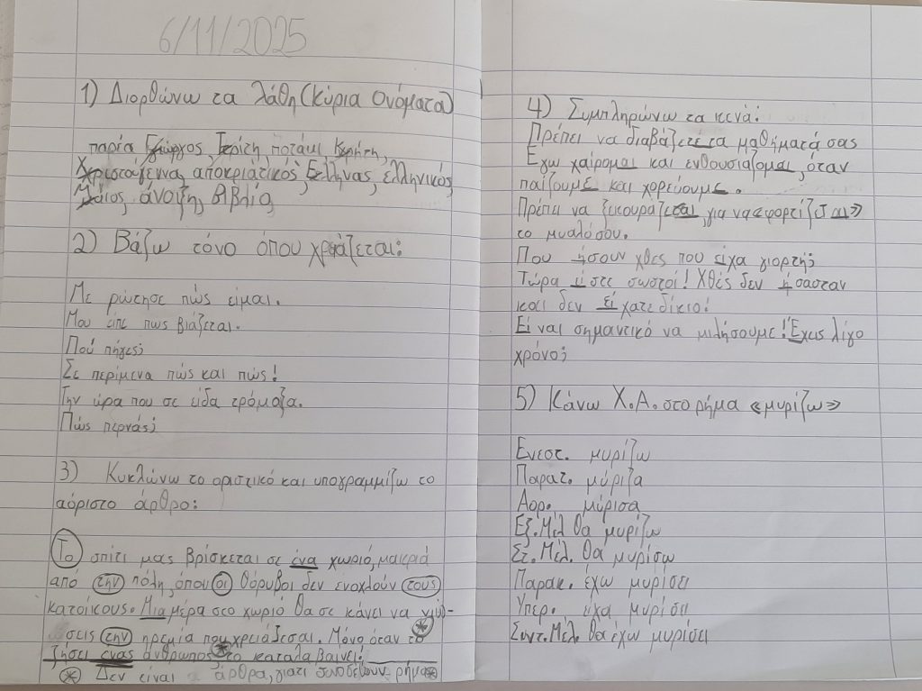 ΓΛΩΣΣΑ: Κάναμε επαναληπτικές ασκήσεις στο τετράδιο.