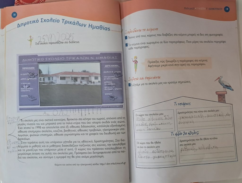 ΓΛΩΣΣΑ: Κάναμε τις σελ. 18-20 Β.Μ. και γράψαμε στο τετράδιο.
