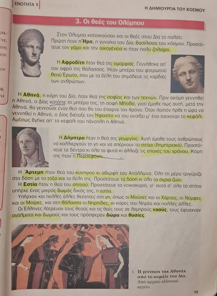- Ερώτηση ανάπτυξης (Τα παιδιά θα κληθούν να γράψουν τι γνωρίζουν για έναν συγκεκριμένο θεό --> Τα ενθαρρύνουμε να κάνουν πολλές, μικρές και απλές προτάσεις αντί για λιγότερες και μεγαλύτερες, για να μη χάνεται το νόημα!)