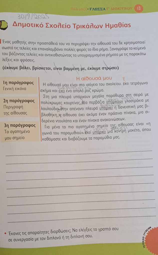 - Μελετώ ό,τι κάναμε στην τάξη (+τις παρατηρήσεις από το τετράδιο εκθέσεων)