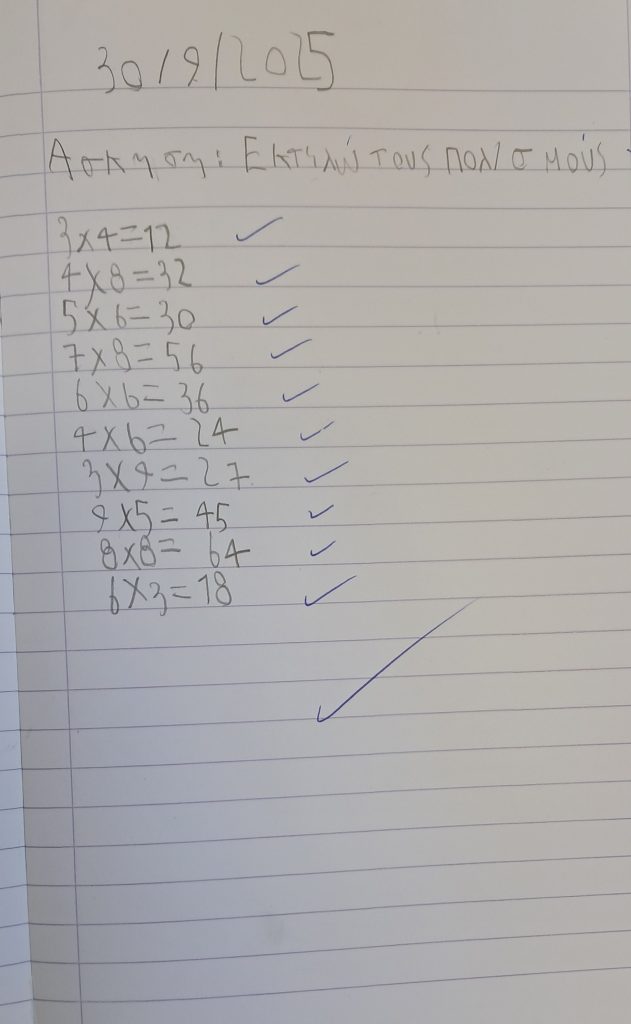 - Κάνουμε καθημερινά επαναλήψεις στις προπαίδειες.