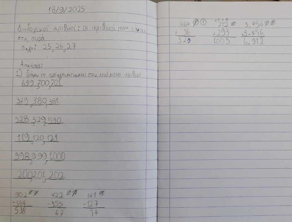 Το φυλλάδιο που έχει μοιραστεί περιλαμβάνει τις ασκήσεις τόσο της Γλώσσας όσο και των Μαθηματικών. ΦΥΛΛΑΔΙΟ 18.9.2025