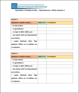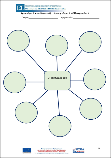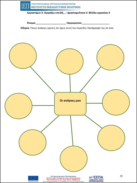 β) Συμπληρώστε στα παρακάτω φύλλα εργασίας τις ανάγκες και τις επιθυμίες που έχετε αυτή τη χρονική στιγμή. Στη συνέχεια παρουσιάσστε και αιτιολογήστε τις επιλογές σας στην ολομέλεια της τάξης.