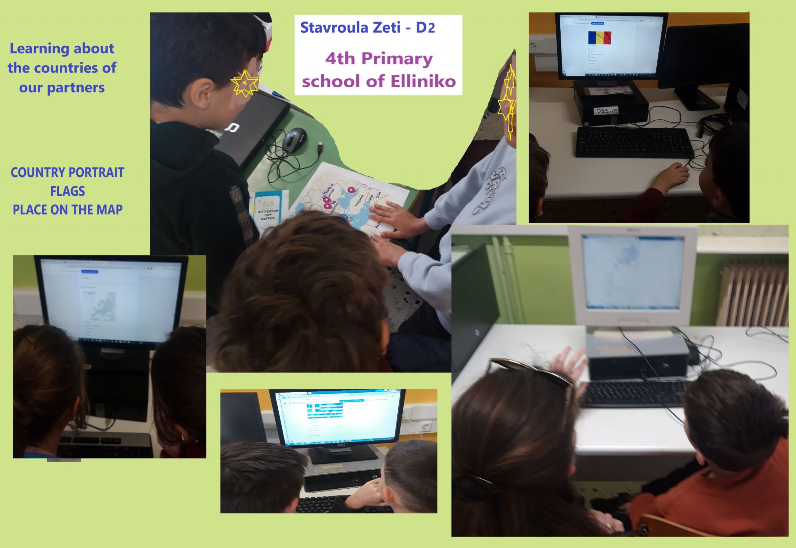 Εγώ και η Σοφία Κουβάβα δουλέψαμε λίγο για να παρουσιάσουμε τις χώρες των εταίρων σας χρησιμοποιώντας το COUNTRY PORTRAIT (είδαμε την παρουσίαση στο εργαλείο CANVA, εξηγήσαμε και συζητήσαμε, ακούσαμε τους εθνικούς ύμνους των άλλων χωρών. Στη συνέχεια οι μαθητές μας έλεγξαν τις γνώσεις τους σχετικά με τις σημαίες και τη θέση των χωρών στο χάρτη.