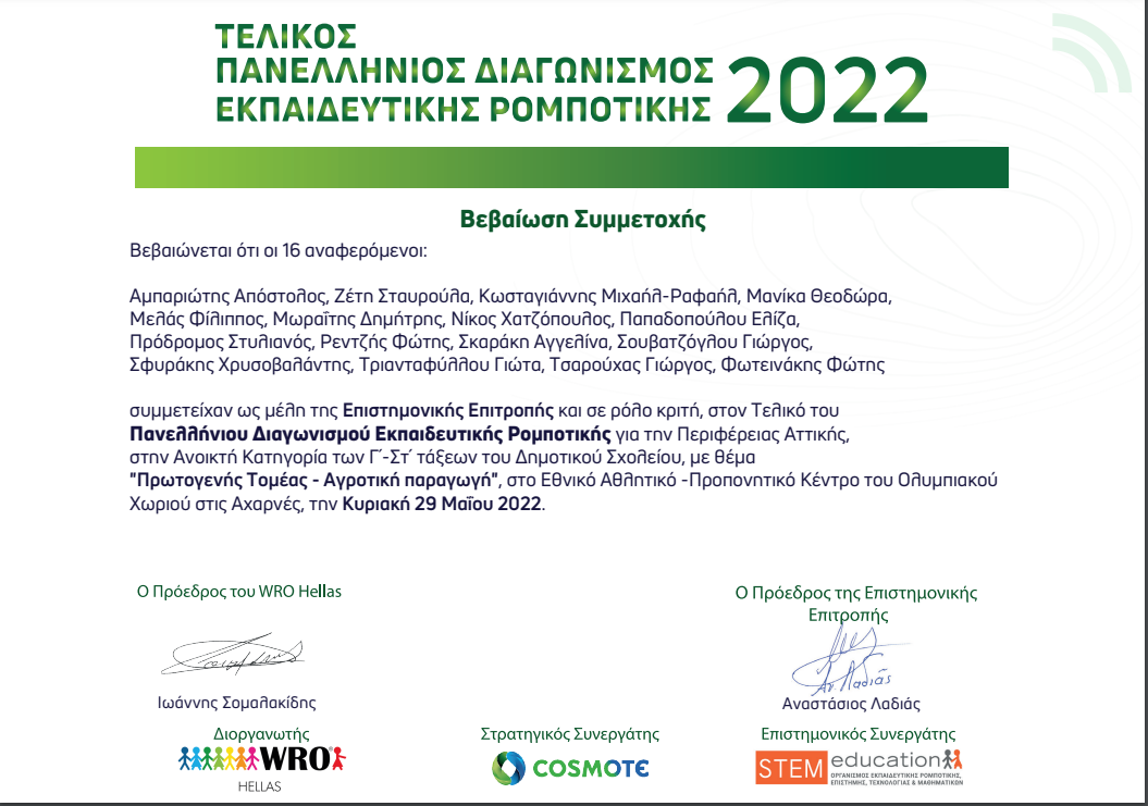 Στον περιφερειακό διαγωνισμό…. πολύ χαρούμενοι περάσαμε στον τελικό!!!!!! Ο Πανελλήνιος Διαγωνισμός Εκπαιδευτικής Ρομποτικής διοργανώνεται φέτος με θέμα “Πρωτογενής Τομέας –…